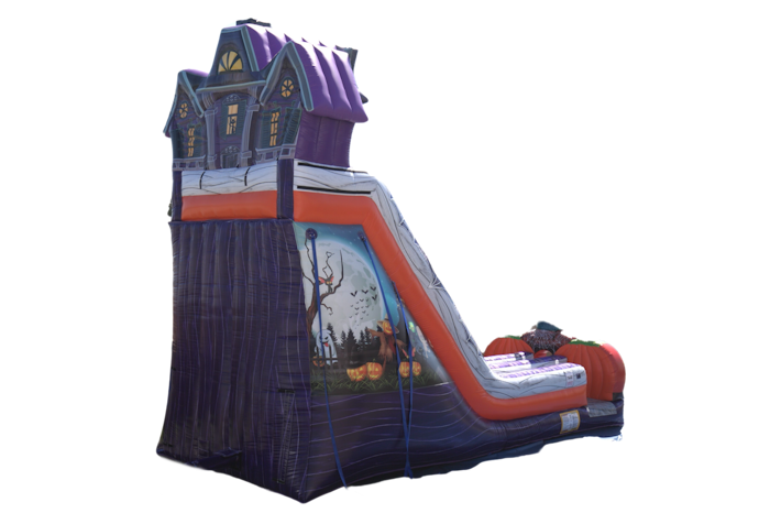 Experience thrills and chills with the 24' Haunted Mansion Slide! Towering high and detailed with eerie haunted mansion art, this slide adds spine-tingling excitement to any event. Riders climb to the top before taking a fast, fun slide down to safety. Perfect for Halloween carnivals and haunted attractions looking for high-impact fun. PRICING & AVAILABILITYPlease select an event location, date and time to obtain real-time pricing and availability. |