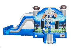 Can’t decide whether you want a bouncer or a slide? You’ll get the best of both worlds with this model! Do you love football? Then this is THE bounce house combo for you! The 3D Football themed combo house is perfect for all your sports fans. Specially designed with the Dallas football colors for all your superfans. It has a bounce house that you know the kids will love, and a connected two lane slide! From inside the bouncer, kids will climb up to the top of the slide, zip down, and then run around to come back for more! This unit has a double lane slide, so two kids can slide down at the same time. Serve up some party fun and order this 3D Football Combo bounce house for your next event! *Note: this is a dry unit. If you are interested in the wet combo, please look in the Water Slide category. PRICING & AVAILABILITYPlease select an event location, date and time to obtain real-time pricing and availability. |