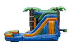 Bounce and Slide Wet Combo with Stair Climb and Basketball Hoop. Great for all ages! Maximize your fun and keep cool in the Texas heat! Enjoy a great looking tropical themed bounce and slide combo! Climb up the ladder inside and shoot down the slide landing in a pool. There’s also a basketball hoop inside for more fun and games. Sun shade mesh covers the bounce area and slide. The kids can bounce, climb up the ladder and push off onto the water slide and splash down into the pool. Serve up some party fun and order the Bahama Breeze Combo for your next event! PRICING & AVAILABILITYPlease select an event location, date and time to obtain real-time pricing and availability. |