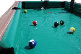 Looking for something different, exciting, and new for your next event? We have taken the traditional game of pool and “Super Sized” it. Our larger than life inflatable human billiard rental combines the game of pool with the skills of soccer. Whether you call it Foot Pool, Human Billiards or Snookball; It will keep everyone moving and entertained for hours! Human Billiards can be played with up to 4 players for a game of doubles or just one on one with you and a friend, either way, it is impossible not to have a blast when playing!. You can also play a game of “Knock Out’ with up to five players. Depending on the game and number of players you can play 30-90 people on it per hour You can play a variety of games such as 8-Ball or 9-Ball. The rules and objective for Human Billiards a.k.a. Snookball remain the same as normal pool, only there is no cue sticks and you may only use your feet to kick the ball. This new and exciting game is sweeping the world. Snookball was originally created by two French entrepreneurs, who added a fun twist to the game called “The Snookball Rule”. The Snookball Rule. A Snookball occurs when a player manages to pocket one of their balls by sending the cue ball over an opponent's ball using a "scoop". When a Snookball is successful, the player who made the shot can take one of the balls that their opponent has already pocketed and put it back in play. PRICING & AVAILABILITYPlease select an event location, date and time to obtain real-time pricing and availability. |