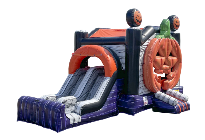 Double the fun with the 3D Pumpkin Combo 2-Lane inflatable! This festive attraction combines a spacious bounce area with dual slides, letting more kids join in the fun. The giant 3D pumpkin design creates a cheerful Halloween vibe while offering hours of entertainment. Perfect for large gatherings where fun and fall spirit come together. PRICING & AVAILABILITYPlease select an event location, date and time to obtain real-time pricing and availability. |